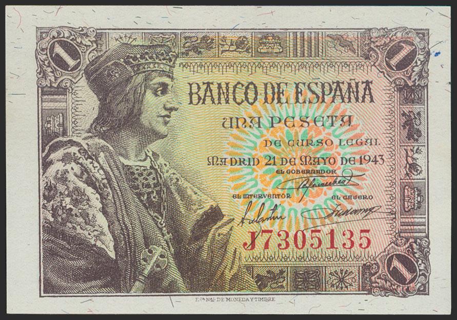 1 Peseta. 21 de Mayo de 1943. Serie J. (Edifil 2021: 447a). SC.