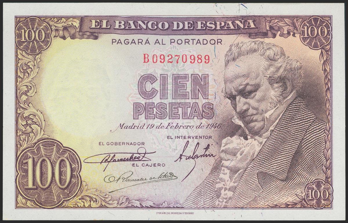 100 Pesetas. 19 de Febrero de 1946. Serie B. (Edifil 2017: 451b). SC-.