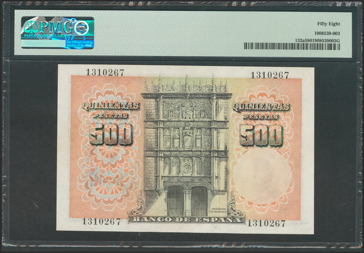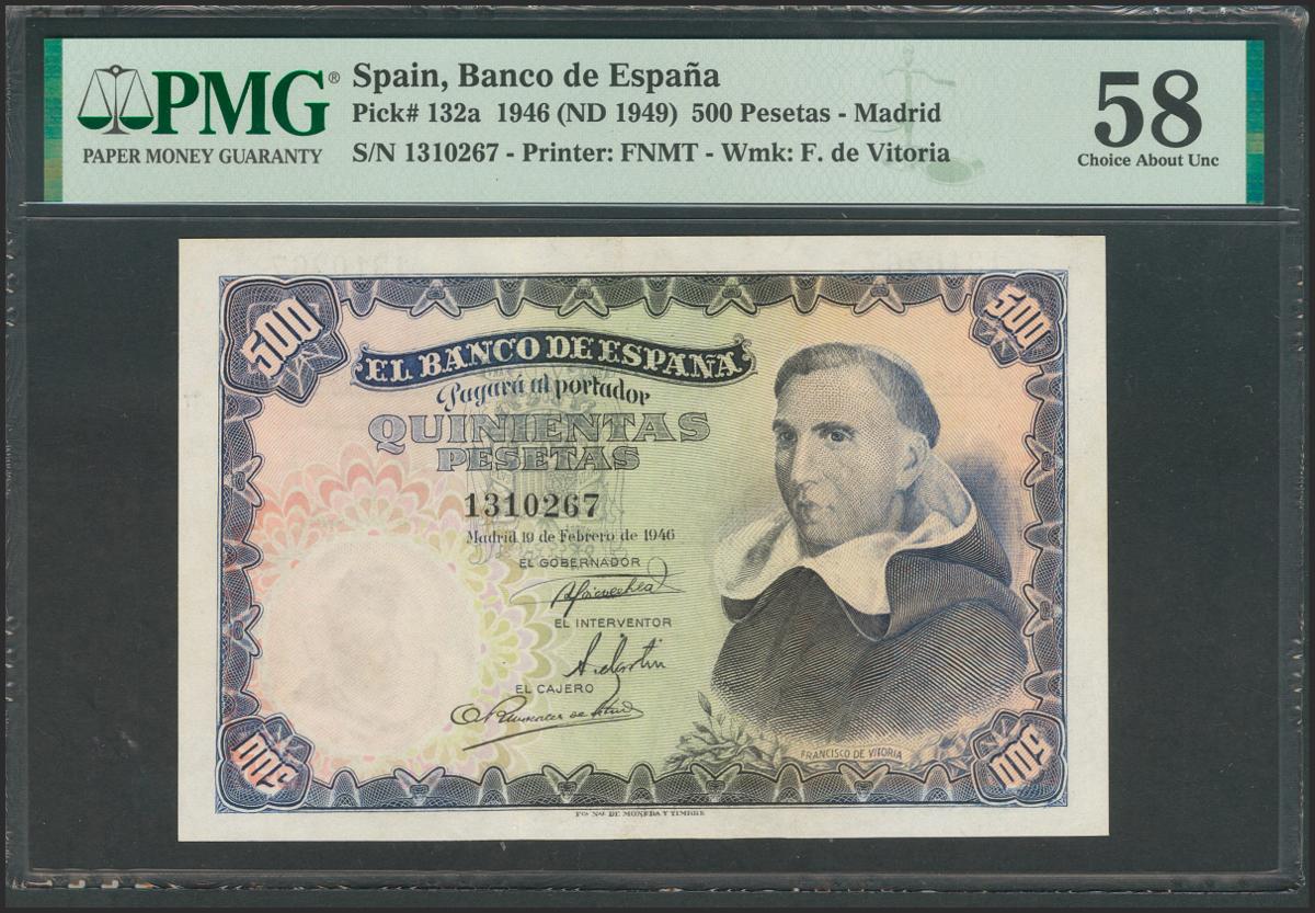 500 Pesetas. 19 de Febrero de 1946. Sin serie. (Edifil 2017: 452). Inusual en esta conservación. EBC+. Encapsulado PMG58.