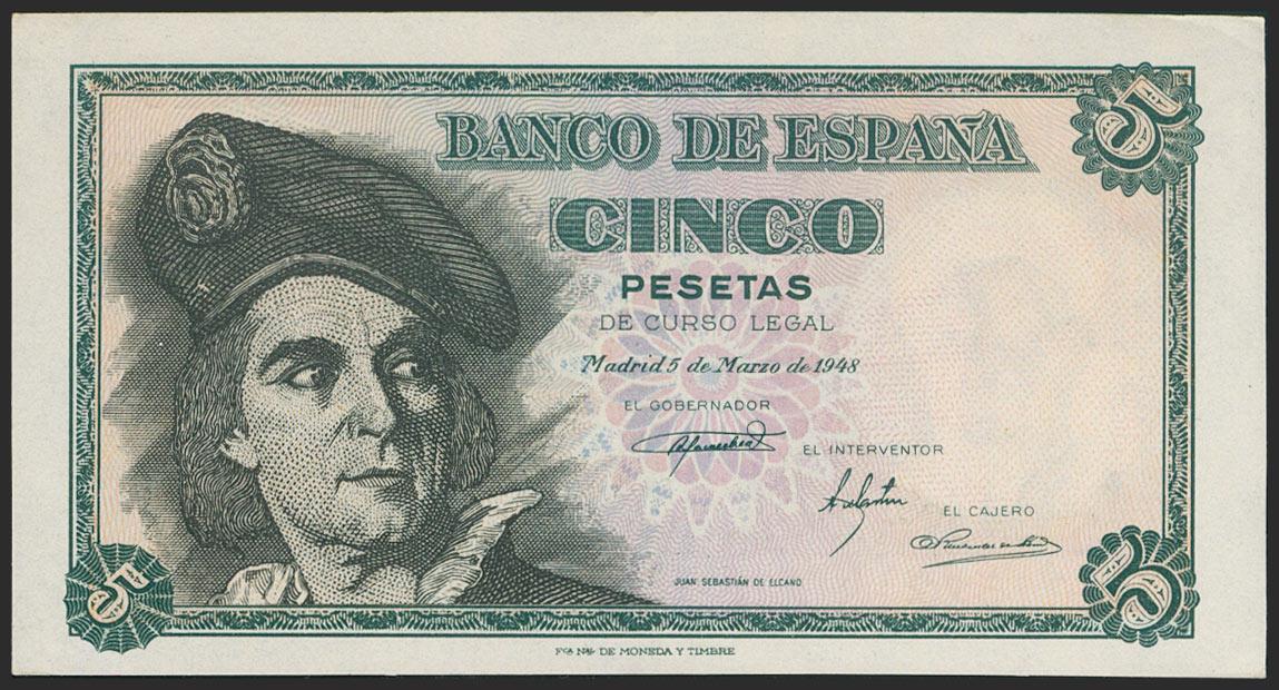 5 Pesetas. 15 de Marzo de 1948. Serie C. (Edifil 2021: 455a). Apresto original. SC.