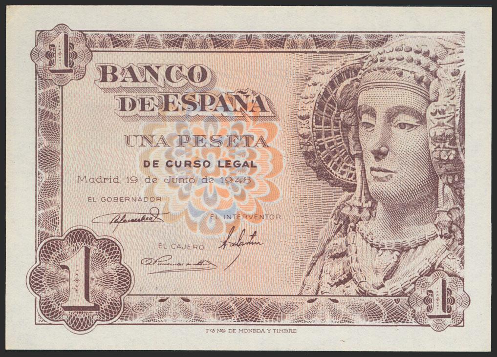 1 Peseta. 19 de Junio de 1948. Sin serie. (Edifil 2017: 457). EBC++.