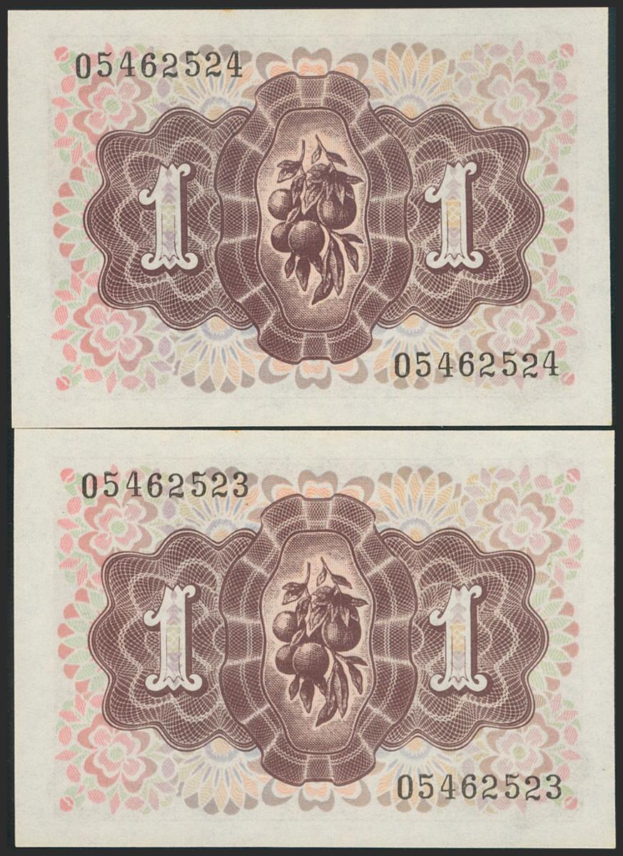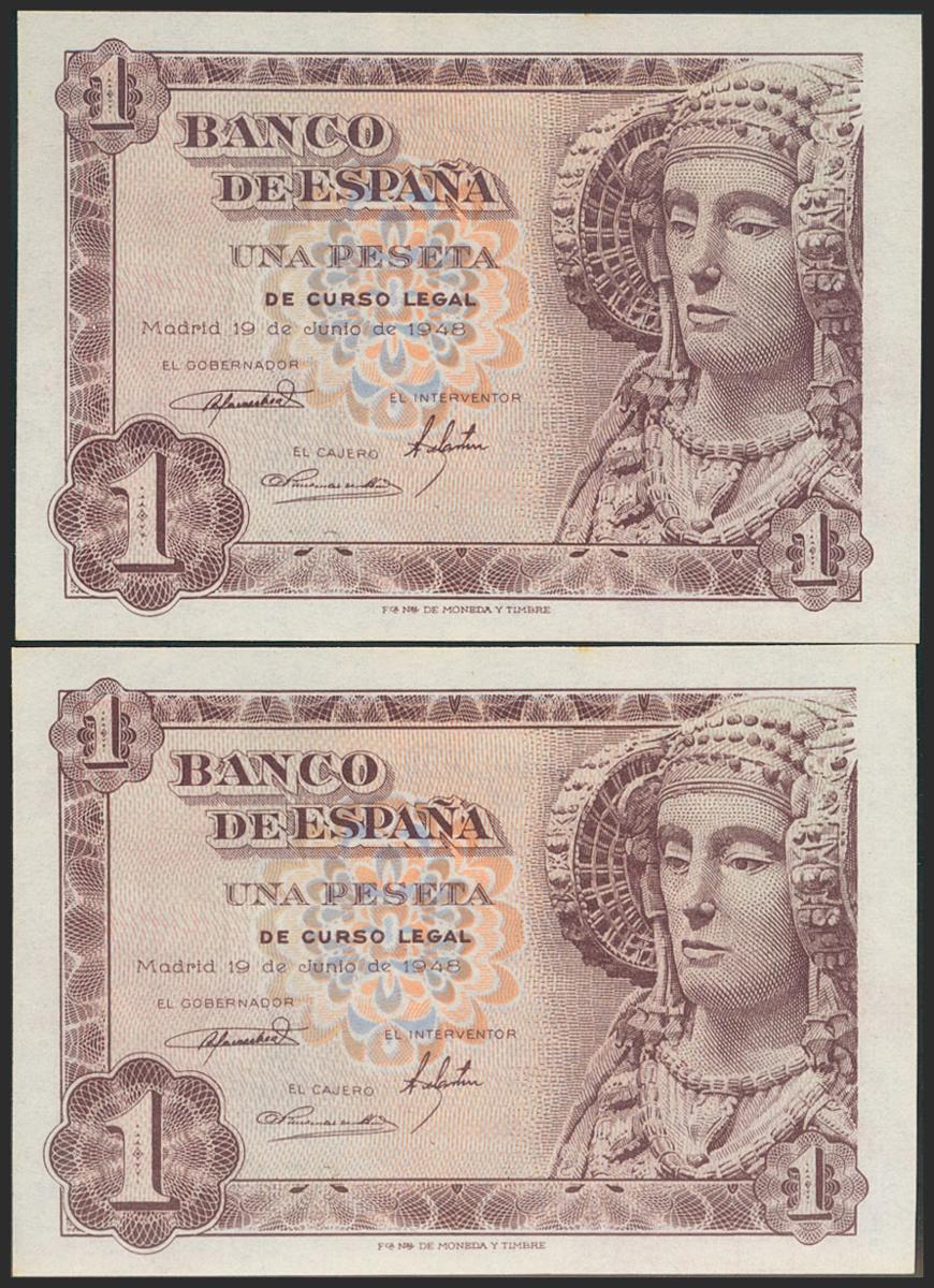 1 Peseta. 19 de Junio de 1948. Pareja correlativa. Sin serie. (Edifil 2021: 457). Apresto original. SC.