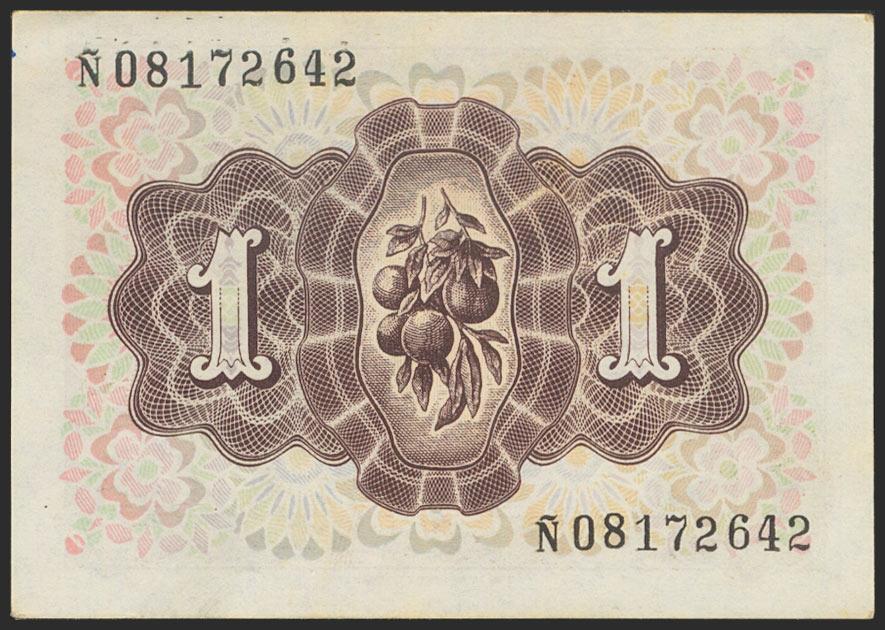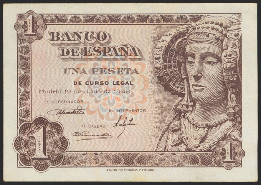 1 Peseta. 19 de Junio de 1948. Serie Ñ, esta serie soló se utilizó en este billete. (Edifil 2021: 457a). Apresto original. SC-.
