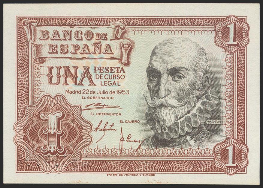 1 Peseta. 22 de Julio de 1953. Serie A. (Edifil 2021: 465a). Apresto original. SC.