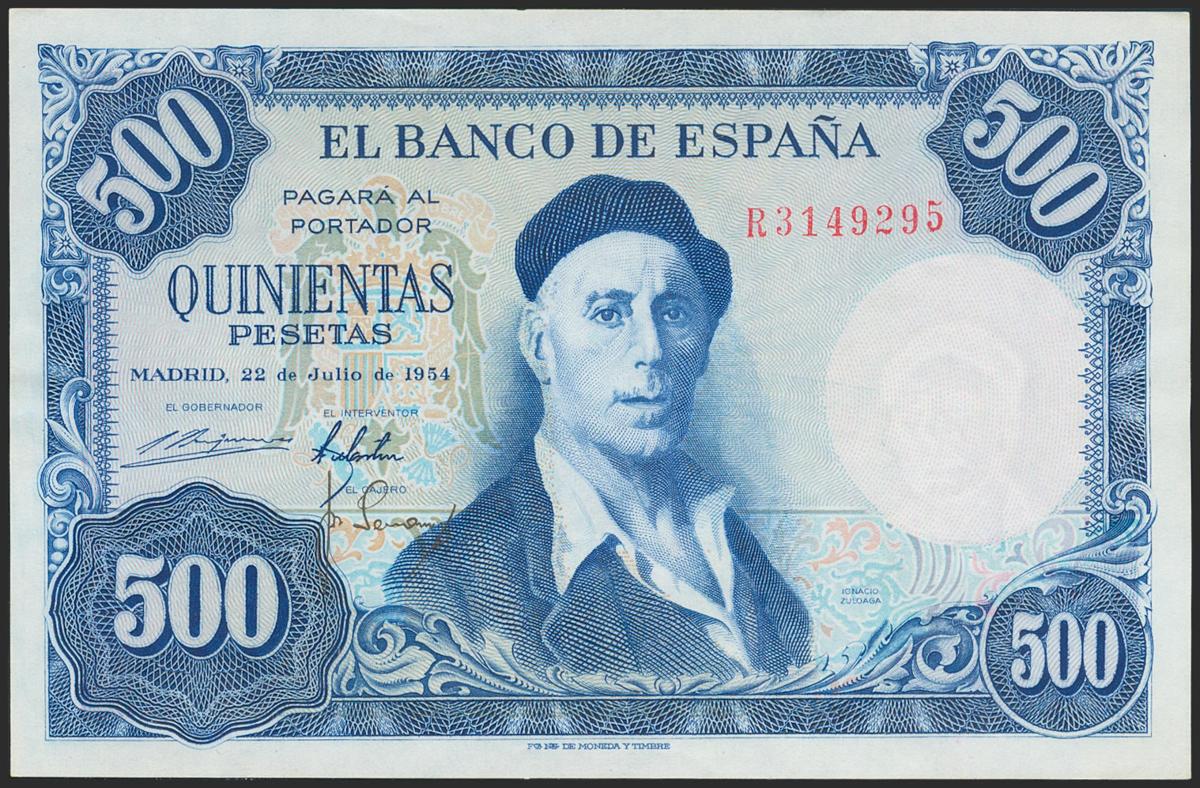 500 Pesetas. 22 de Julio de 1954. Serie R. (Edifil 2021: 468a). Conserva todo su apresto original. SC-.