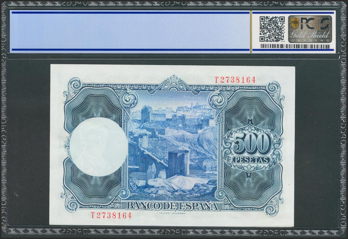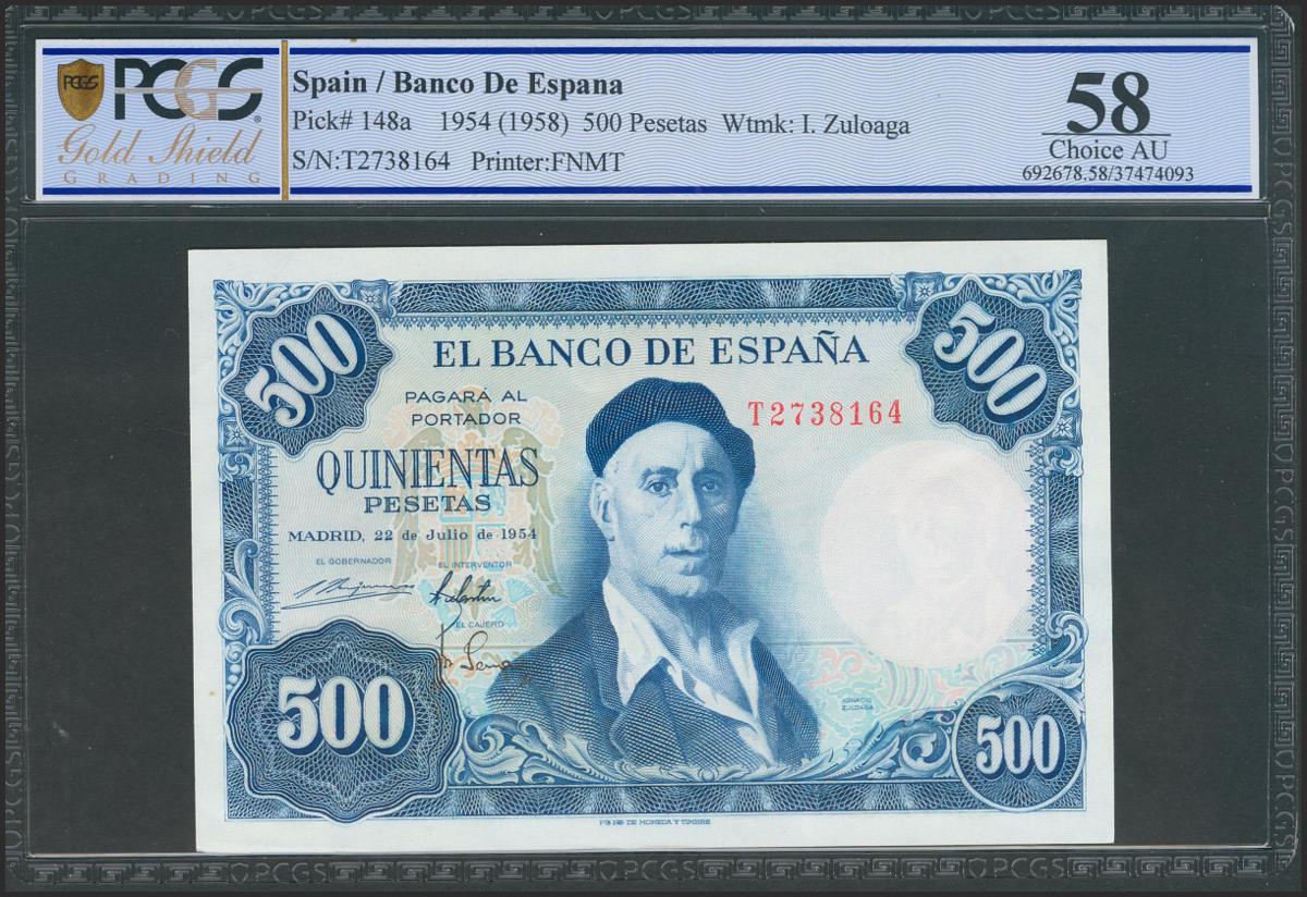 500 Pesetas. 22 de Julio de 1954. Serie T. (Edifil 2021: 468b). EBC+. Encapsulado PCGS58.
