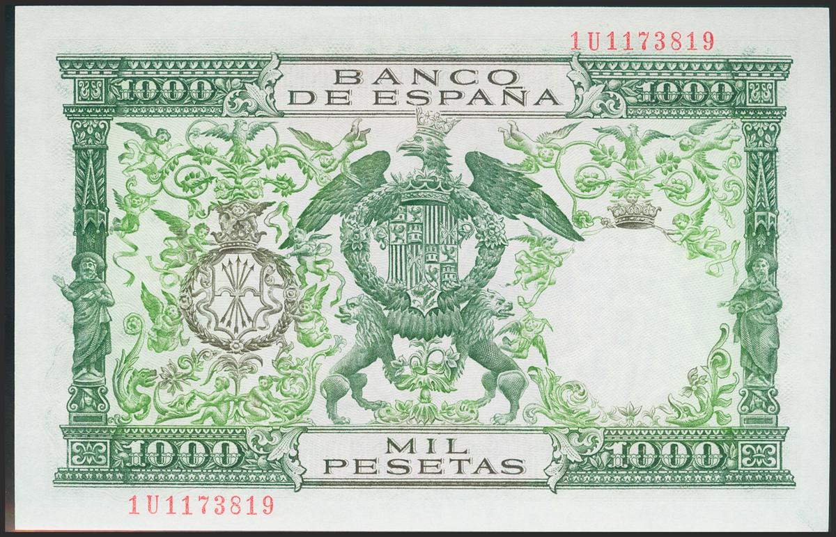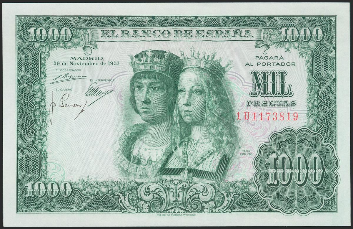 1000 Pesetas. 29 de Noviembre de 1957. Serie 1U. (Edifil 2021: 469b). Apresto original. SC.