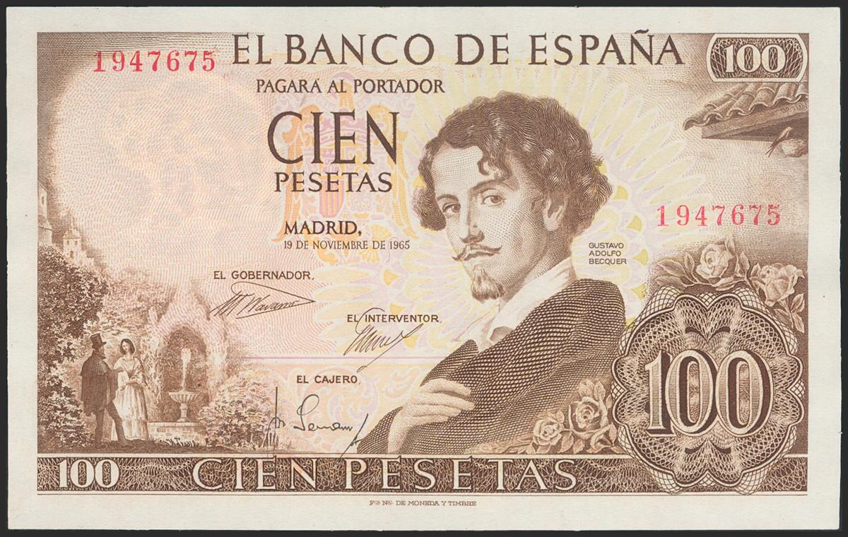 100 Pesetas. 19 de Noviembre de 1965. Sin serie. (Edifil 2017: 470). Apresto original. SC.