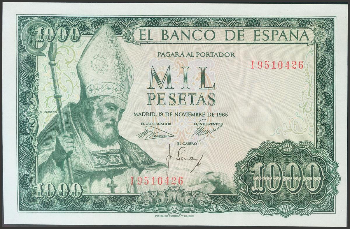 1000 Pesetas. 19 de Noviembre de 1965. Serie I. (Edifil 2017: 471b). Apresto original. SC.