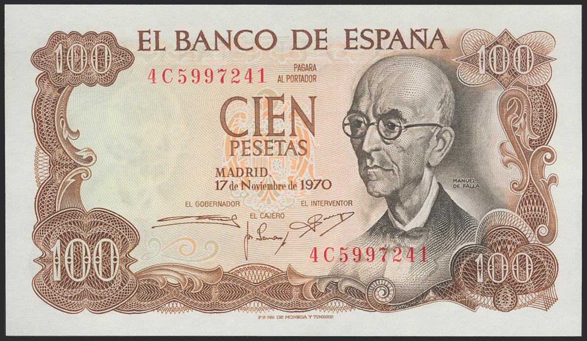 100 Pesetas. 17 de Noviembre de 1970. Serie 4C. (Edifil 2021: 472c). SC.