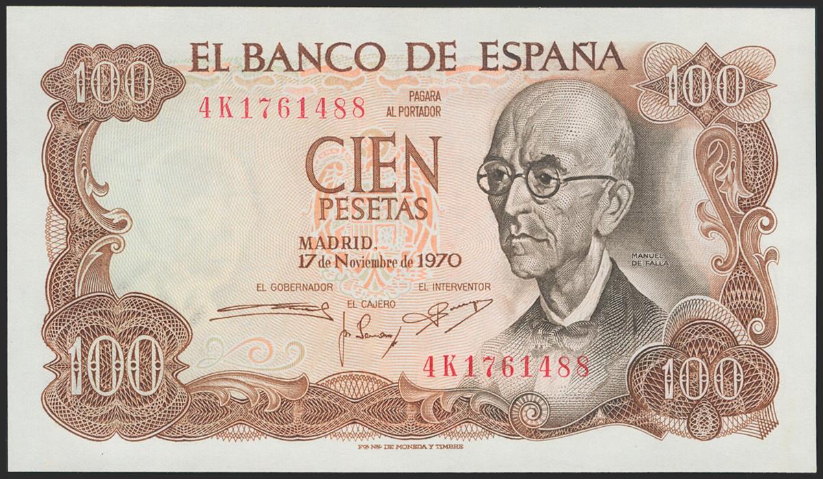 100 Pesetas. 17 de Noviembre de 1970. Serie 4K. (Edifil 2021: 472c). SC.