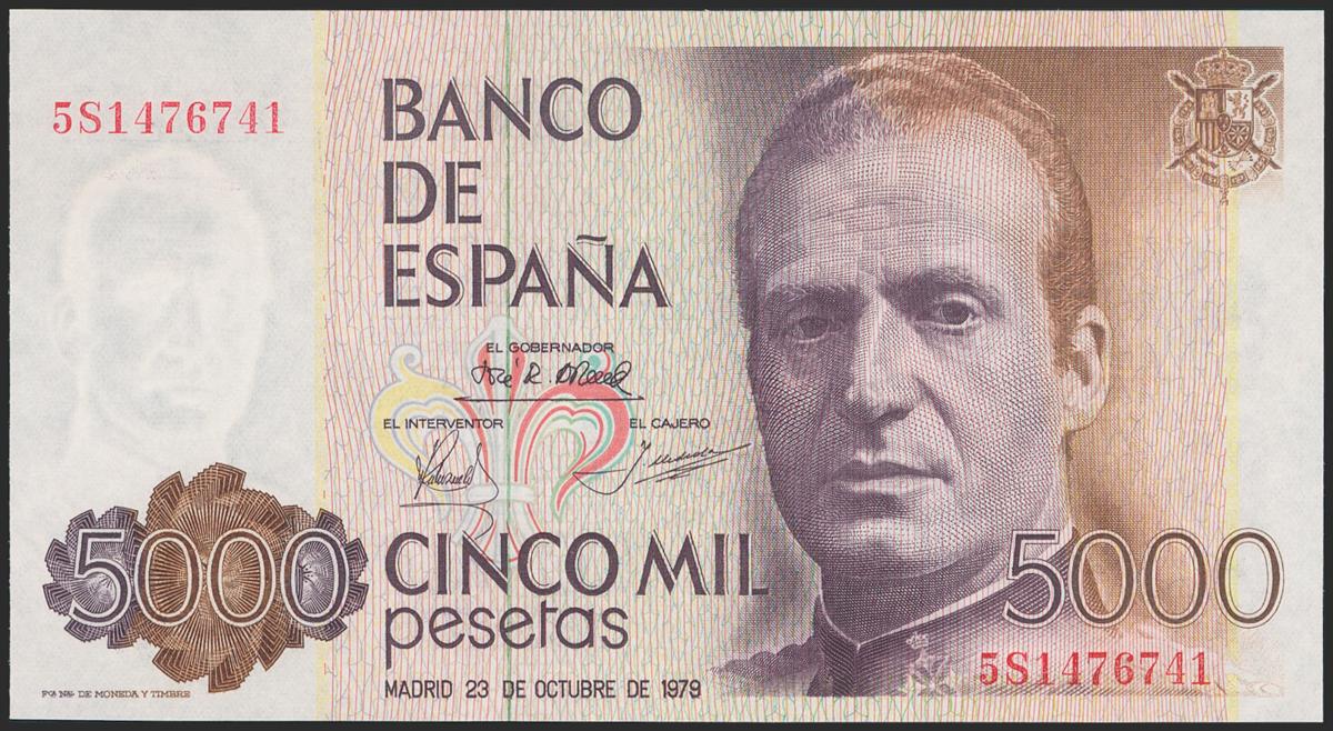 5000 Pesetas. 23 de Octubre de 1979. Serie 5S y numeración capicúa. (Edifil 2021: 478a). SC.