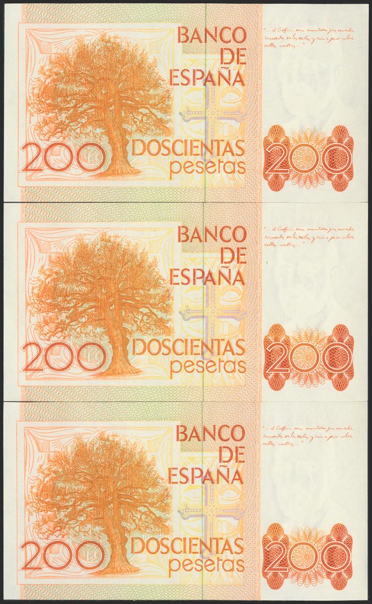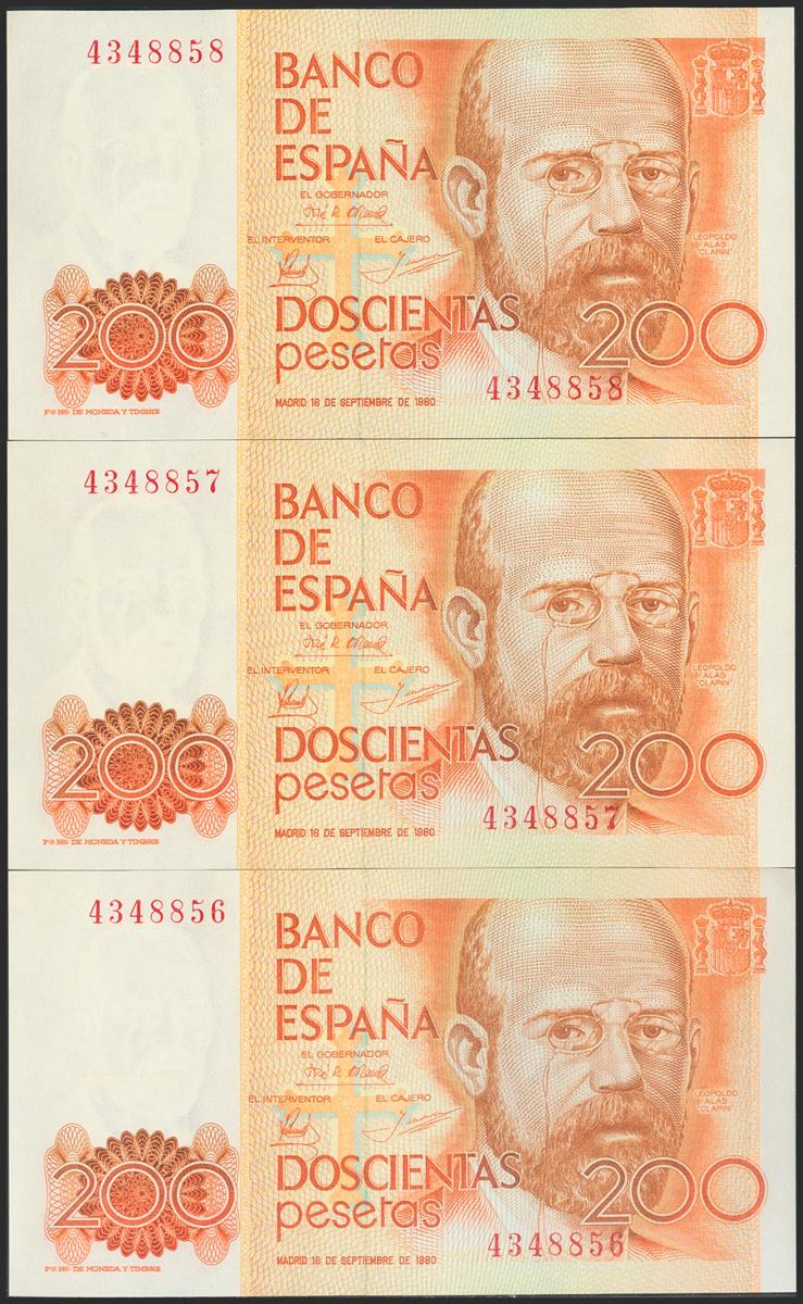 200 Pesetas. 18 de Septiembre de 1980. Trío correlativo. Sin serie. (Edifil 2021: 480). SC.