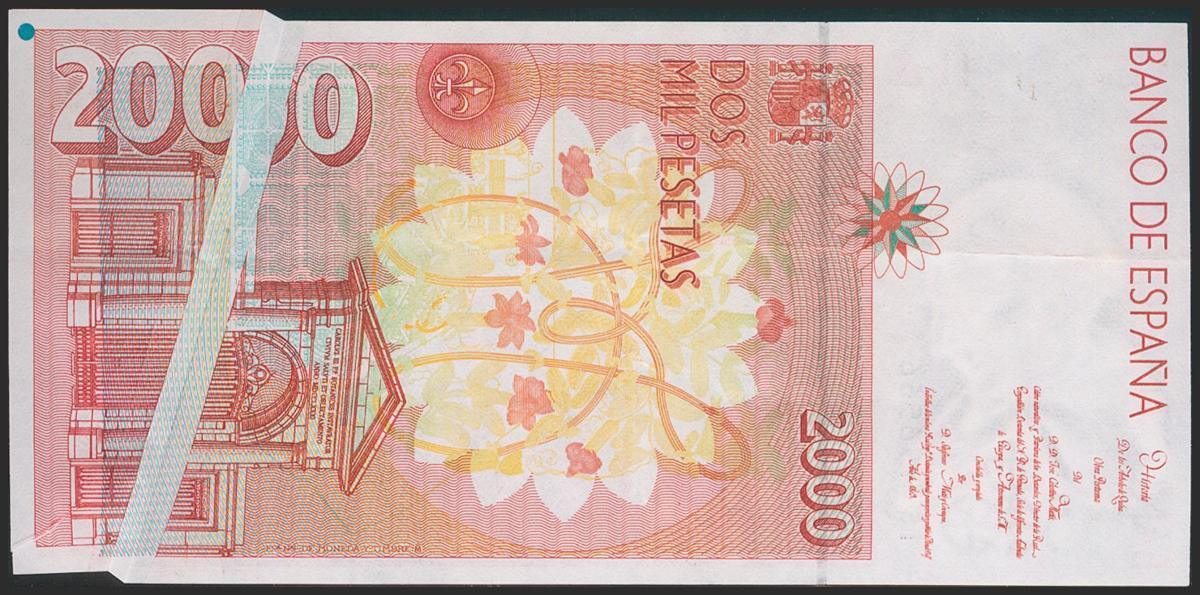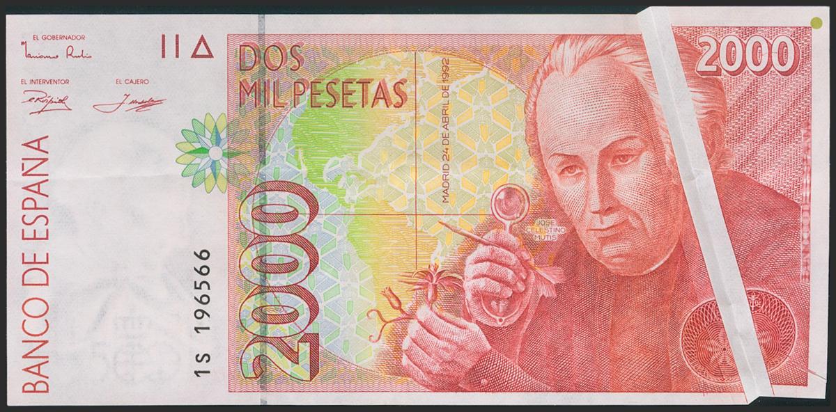 2000 Pesetas. 24 de Abril de 1992. Variedad fuelle vertical del papel. Serie 1S. (Edifil 2021: 482A). Muy espectacular. EBC+.