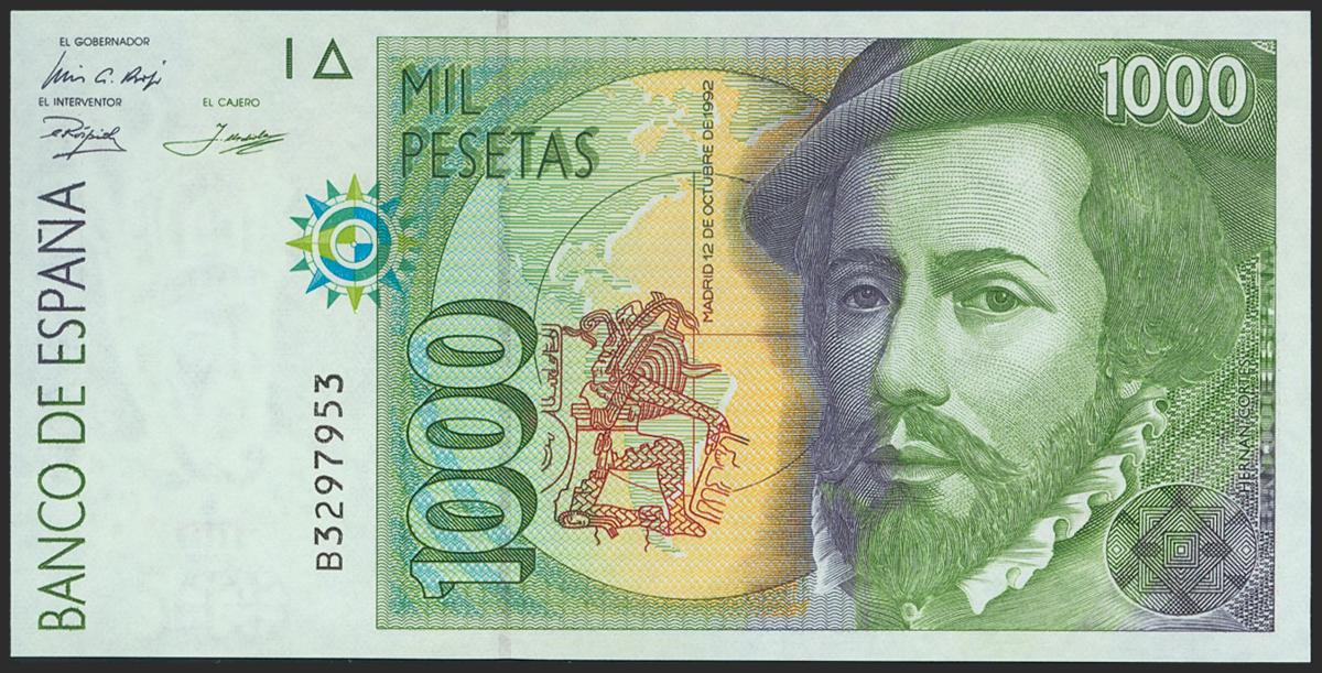 1000 Pesetas. 12 de Octubre de 1992. Serie B. (Edifil 2021: 483a). SC.
