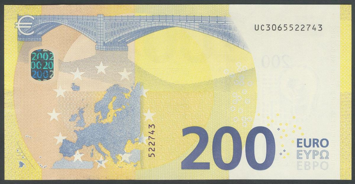 200 Euros. (2019ca). Firma Draghi. Serie U (Francia). (Edifil 2021: 498). SC.