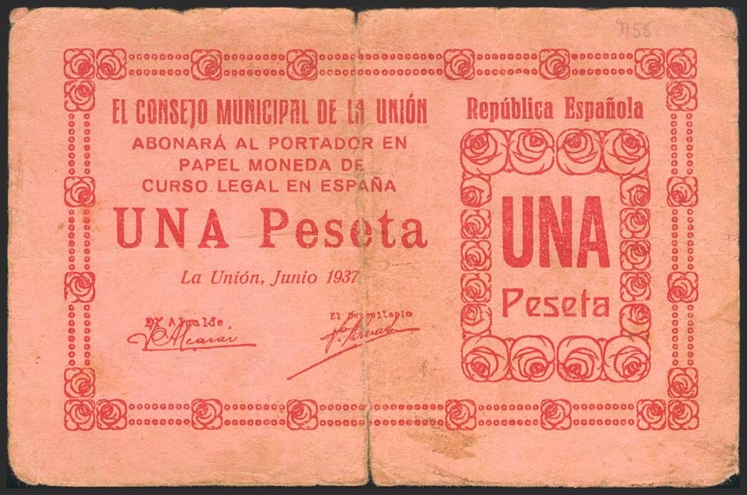 LA UNION (MURCIA). 1 Peseta. Junio 1937. Serie A. (González: 5225). MBC-.