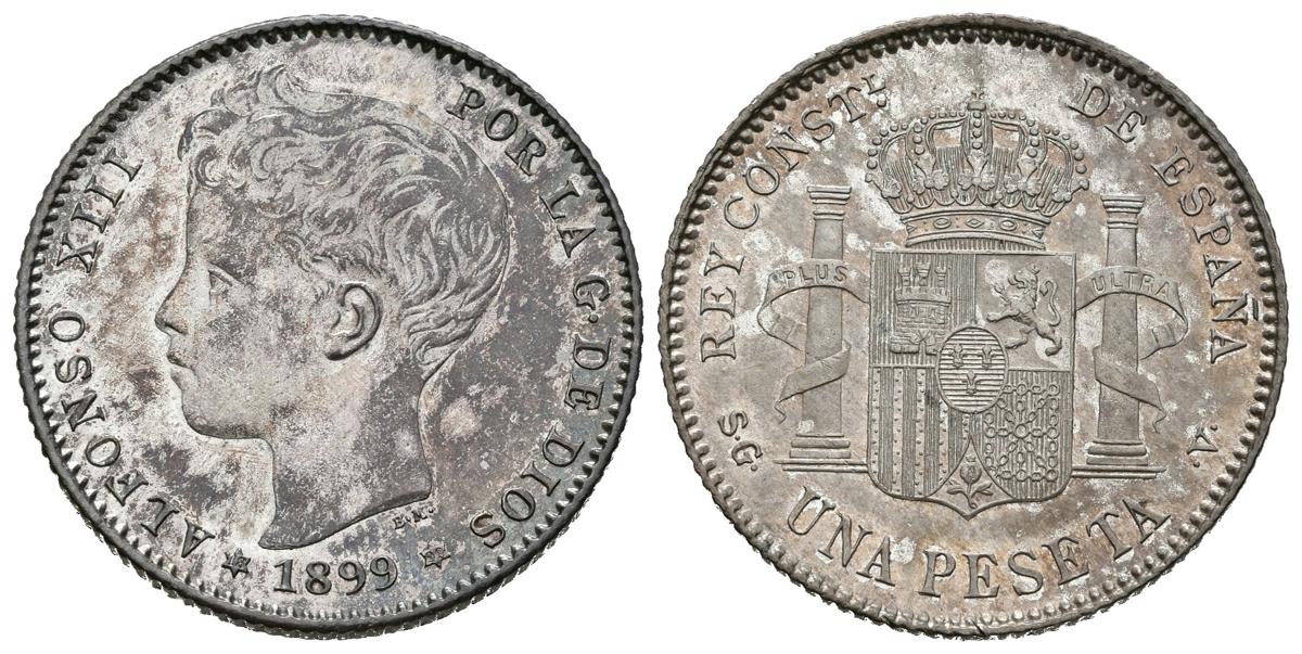 ALFONSO XIII (1885-1931). 1 Peseta. (Ar. 4,92g/23mm). 1899 *18-99. Madrid SGV. (Cal-2019-57). EBC+. Precioso brillo.