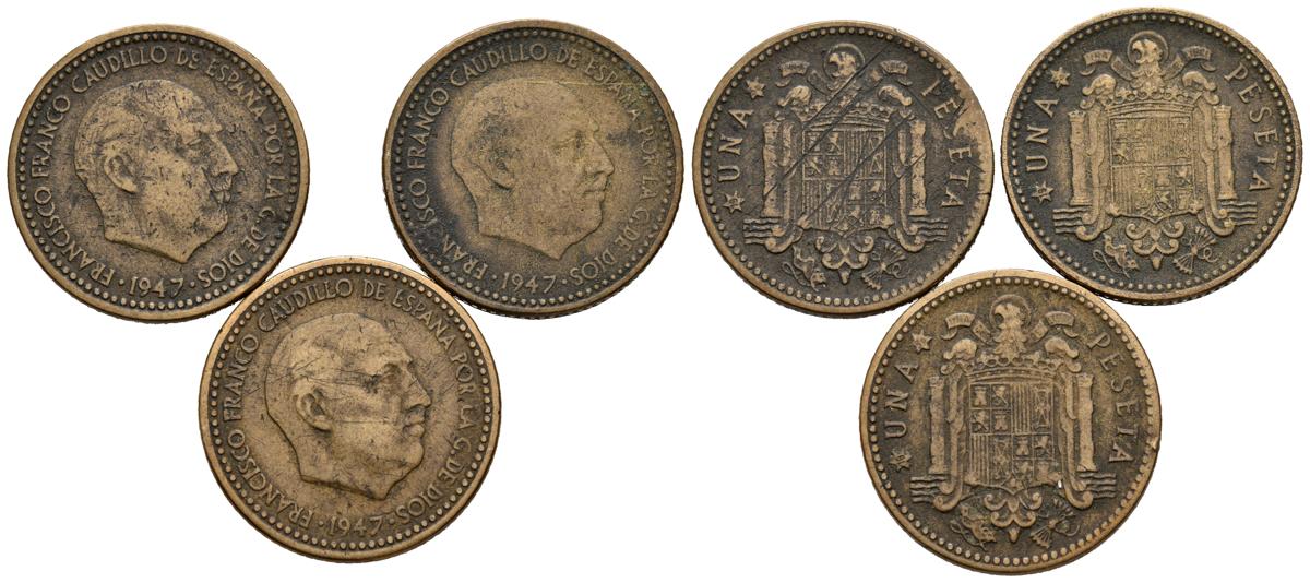 ESTADO ESPAÑOL. Conjunto de tres monedas de 1 Peseta de 1947 *56. MBC-. A EXAMINAR.
