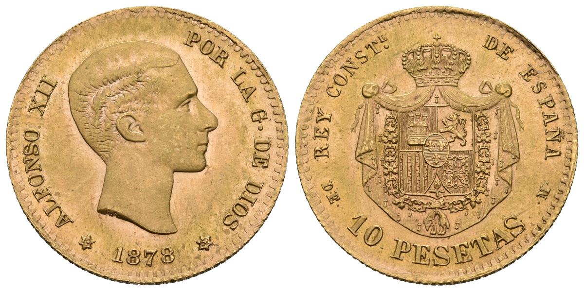 ESTADO ESPAÑOL. 10 Pesetas. (Au. 3,21g/19mm). 1878 *19-62. Madrid DEM. (Cal-2019-168). Reacuñación oficial. EBC/EBC+. Restos de brillo original.