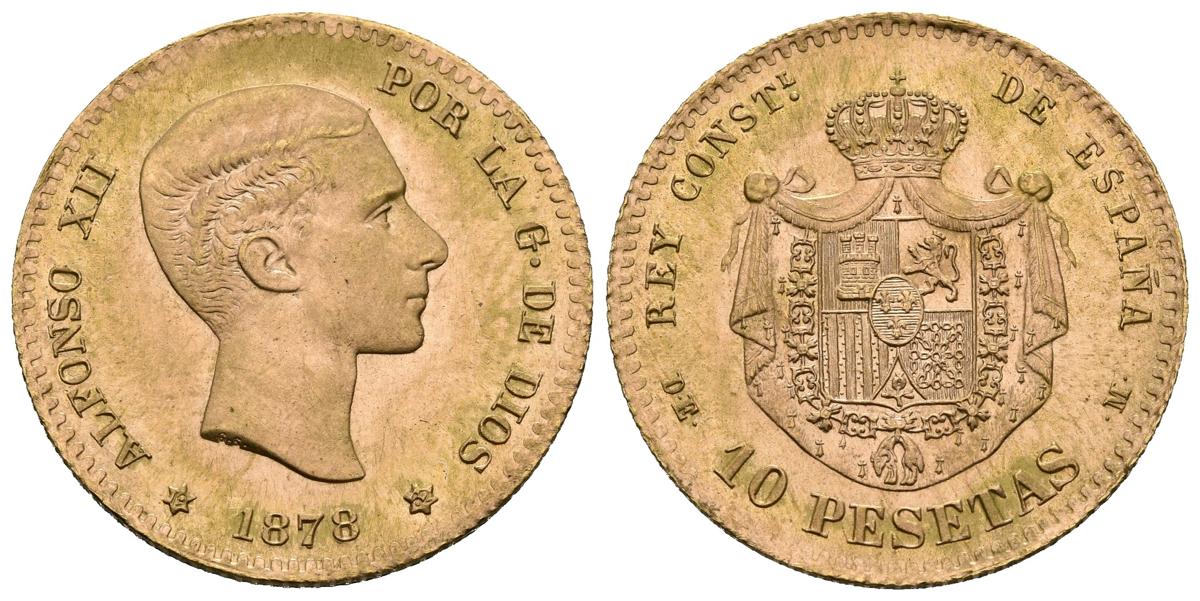ESTADO ESPAÑOL. 10 Pesetas. (Au. 3,22g/19mm). 1878 *19-62. Madrid DEM. (Cal-2019-168). Reacuñación oficial. EBC/EBC+. Restos de brillo original.