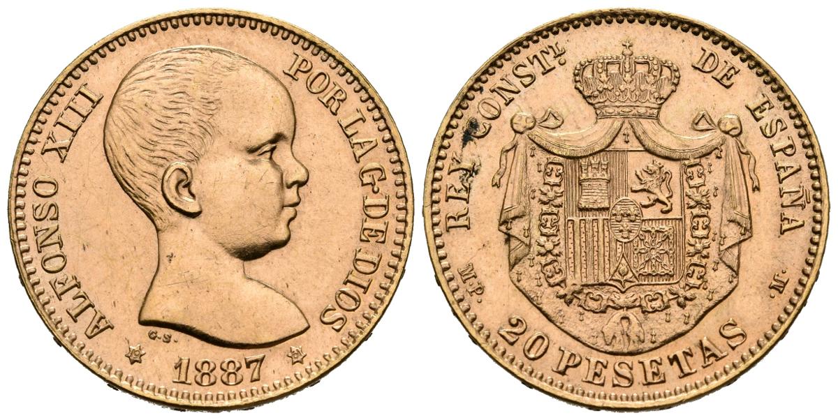 ESTADO ESPAÑOL. 20 Pesetas. (Au. 6,44g/21mm). 1887 *19-61. Madrid MPM. (Cal-2019-170). EBC+.