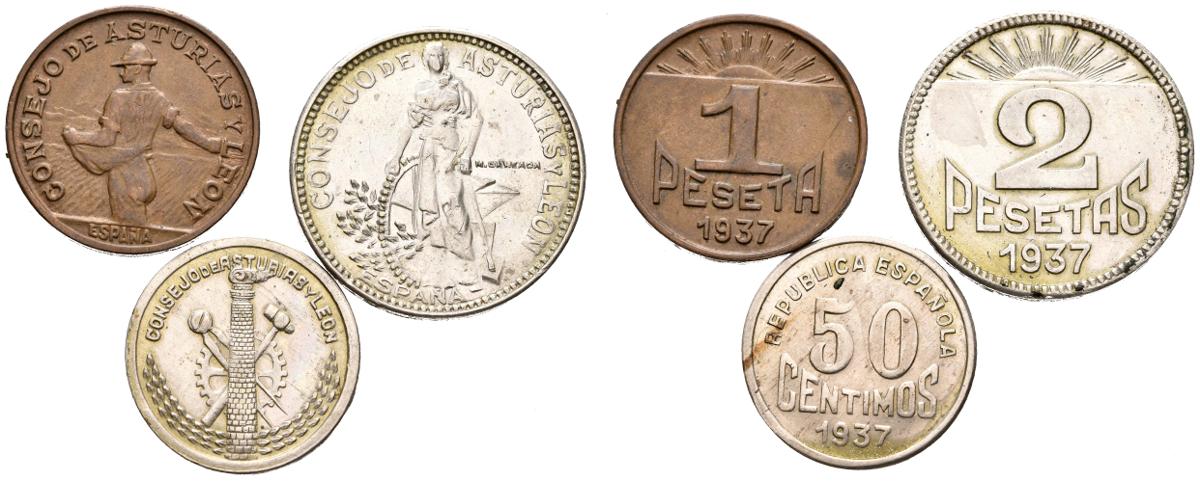 CONSEJO DE ASTURIAS Y LEÓN (1936-1939). Serie de 3 valores: 50 Céntimos, 1 y 2 Pesetas. 1937. (Cal-2019-8-10). MBC+.