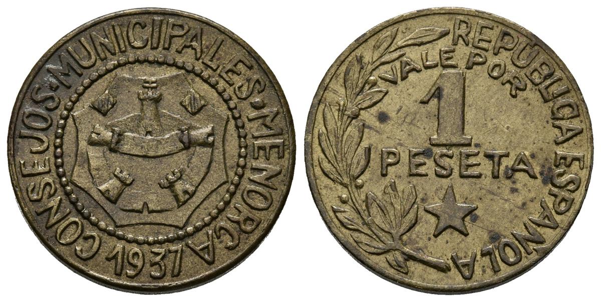 MENORCA. 1 Peseta. (La. 2,95g/19mm). 1937. (Cal-2019-23). MBC+.