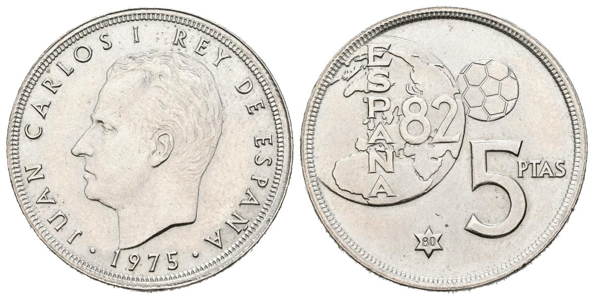 JUAN CARLOS I (1975-2014). 5 Pesetas. (CuNi. 5.77g / 23mm). 1975 * 80. Madrid. (Cal-2019-40). Error del mundial. EBC+. Escasa.