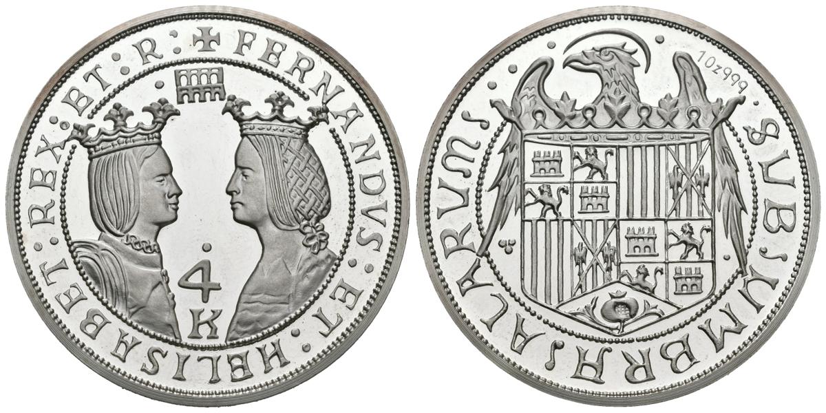 JUAN CARLOS I. 4 Excelentes. (Ar. 62,00g/40mm). Reacuñación. PROOF.