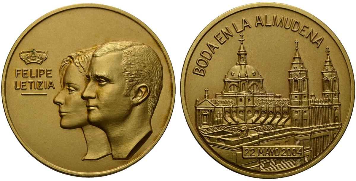 NUMISMA. Medalla. (Ar. 47,22g/45mm). 2004. Boda Real en la Almudena. SC. Bañado en oro de 24 Kilates. Contiene certificado Numisma.
