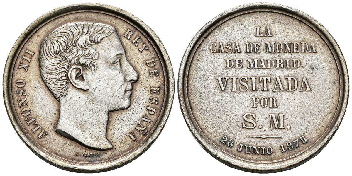 ALFONSO XII (1874-1885). Visita a la Casa de la Moneda. (Ar. 17,71g/33mm). 28 de junio de 1875. Madrid. Grabador: G. Sellan. (Vives 462 variación de metal). MBC+.