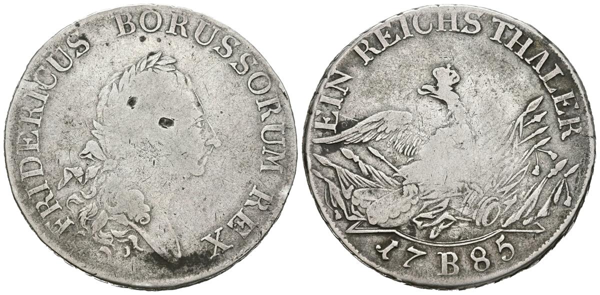ALEMANIA (Prusia). Thaler (Ar. 21,66g/38mm). 1785. Breslau. B. Friedrich II (1740 - 1786). (Km#332.2). BC. Rara.