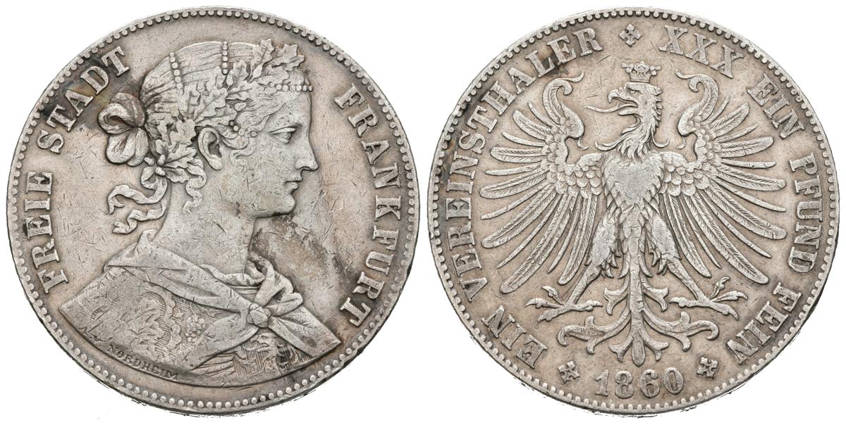 ALEMANIA (Estados Alemanes). 1 Thaler (Ar. 18.32g / 33mm). 1860. Frankfurt. (Km # 360). MBC/MBC+