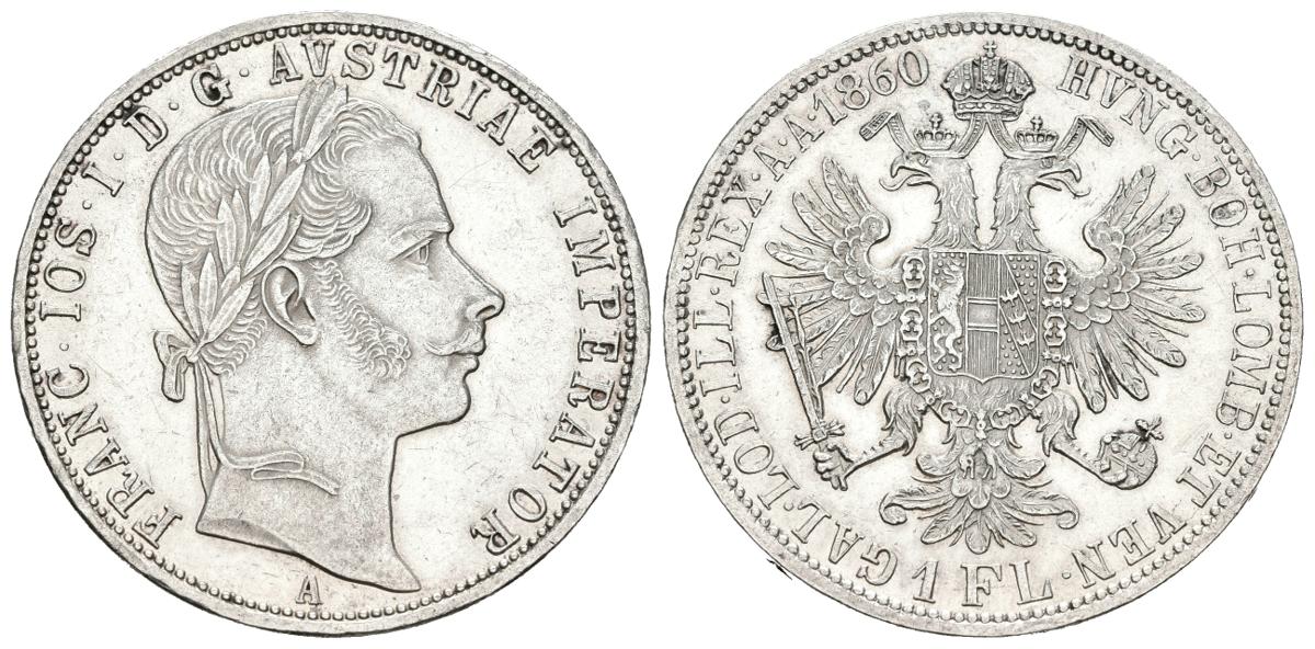 AUSTRIA. 1 Florín (Ar. 12,34g/29mm). 1860. Francisco José I. Viena A. (Km#2219). EBC. Leves marquitas.
