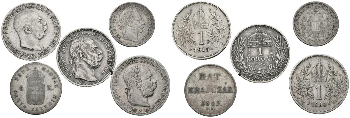 AUSTRIA-HUNGRÍA. Interesante conjunto compuesto por 5 monedas de plata acuñadas entre 1849 y 1915. Diferentes módulos y estados de conservación. A EXAMINAR.