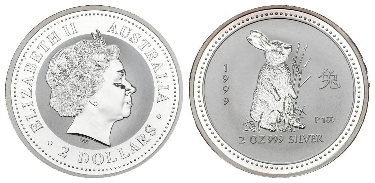 AUSTRALIA. 2 Dollars (Ar. 63,03g/49mm). 1999. Año del Conejo. (Km#503). PROOF. En cápsula original.