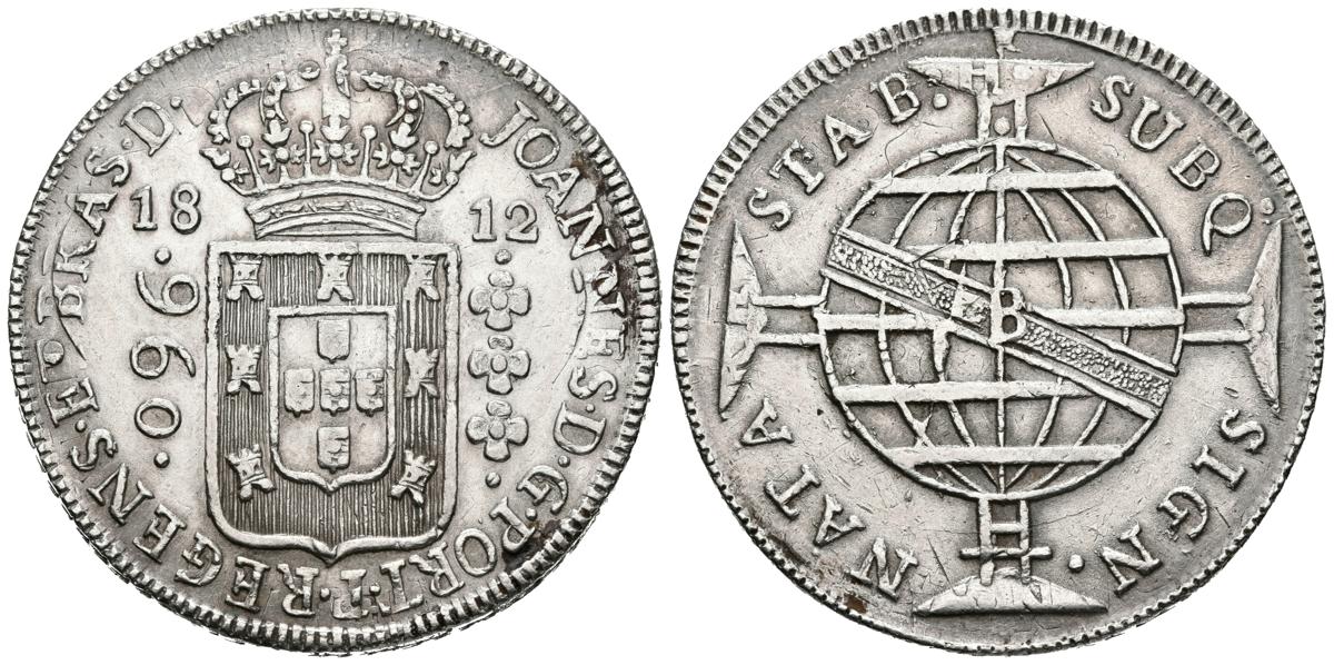 BRASIL, Prínicipe regente Juan. 960 Reis. (Ar. 26,77g/41mm). 1812. Bahía B. (Km#307.1). MBC+. Acuñado sobre un Real de a 8.