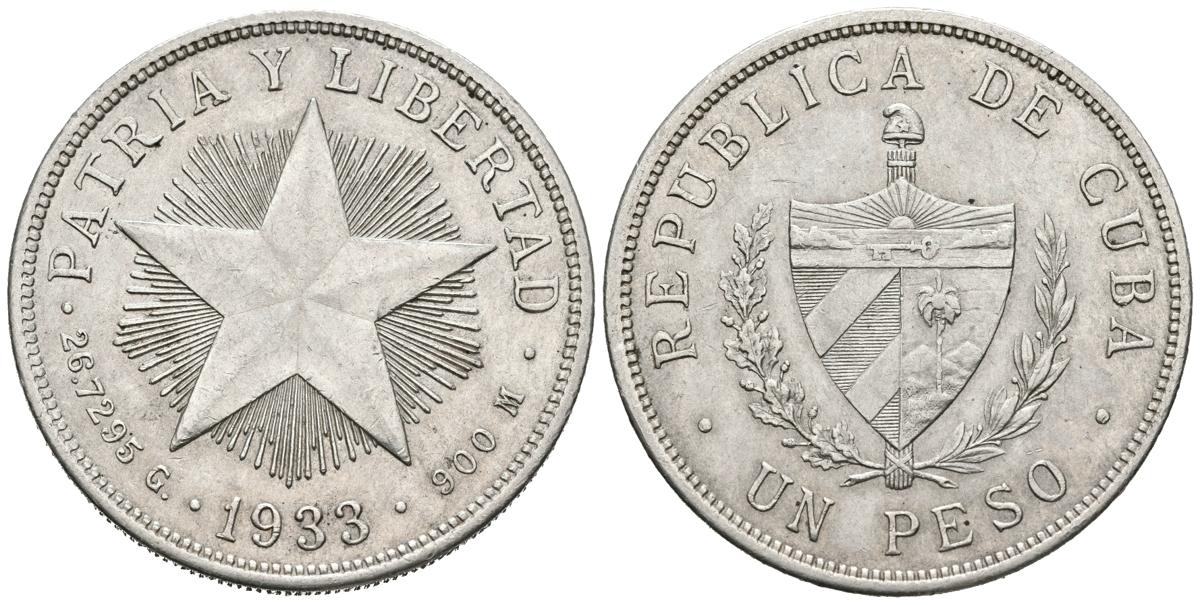 CUBA. 1 Peso (Ar. 26.66g/38mm). 1933. (Km#15.2). MBC+