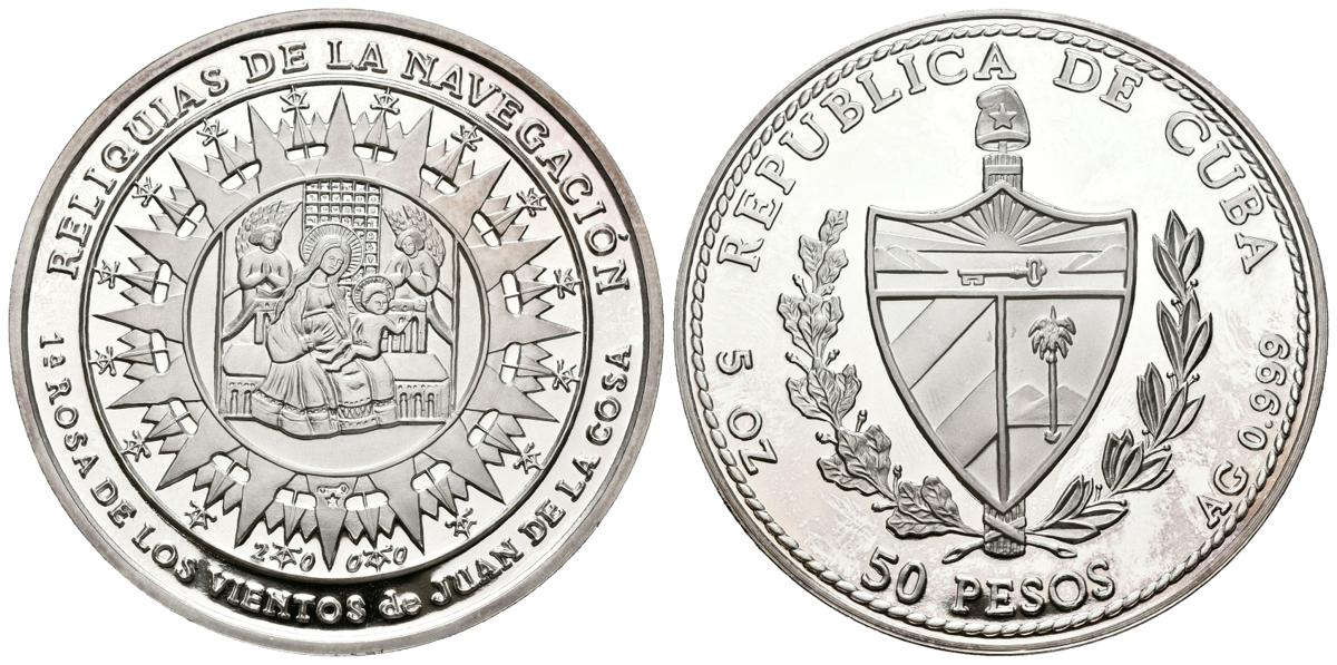 CUBA. 50 Pesos (Ar. 155,50g/65mm). 2000. Reliquias de la Navegación. 1ª Rosa de los Vientos de Juan de la Cosa. (Km no cita). PROOF. Plata de 0.999.