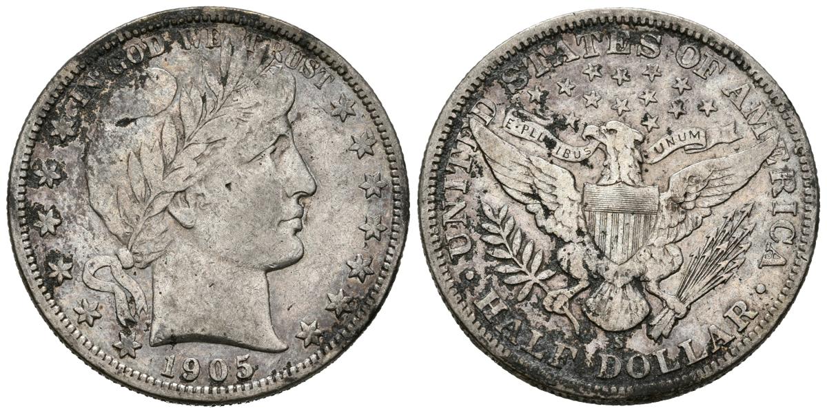 ESTADOS UNIDOS. 1/2 Dollar (Ar. 12,33g/30mm). 1905. San Francisco. S. Tipo Barber. (Km#116). BC+. Escasa.