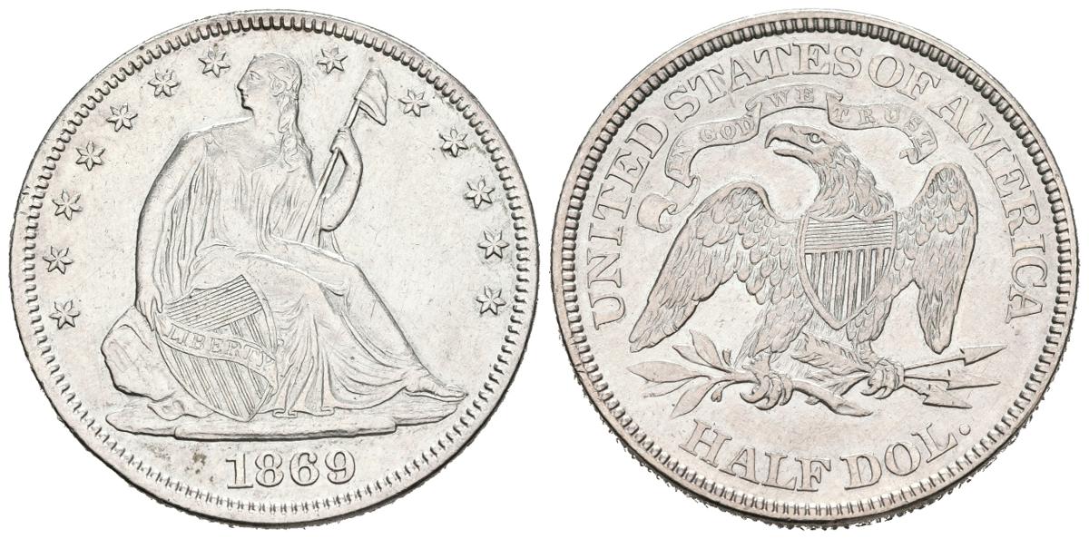 ESTADOS UNIDOS. 1/2 Dollar. (Ar. 12,43g/31mm). 1869. (Km#99). MBC+.
