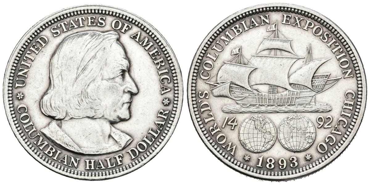 ESTADOS UNIDOS. 1/2 Dollar (Ar. 12,54g/36mm). 1893. Philadelphia. World Columbia Exposition Chicago. (Km#117). MBC+. Limpiada.