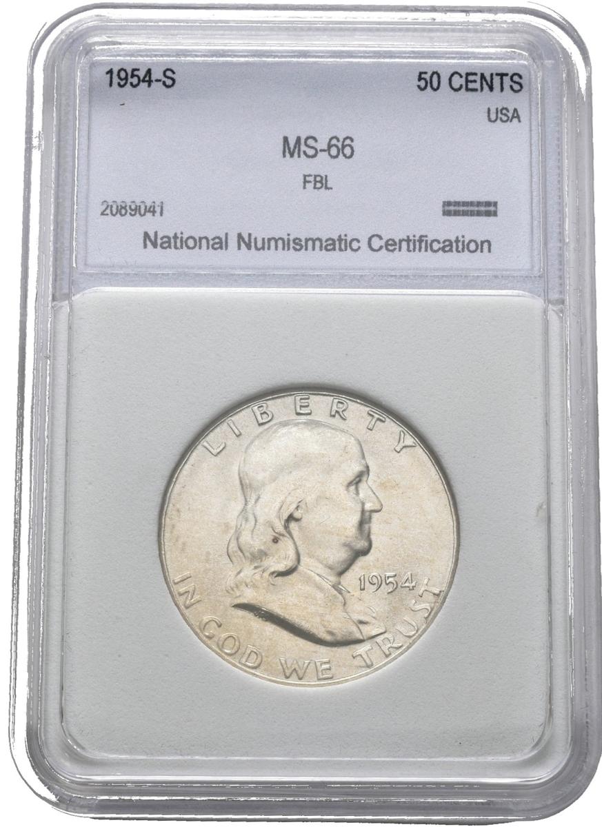 ESTADOS UNIDOS. 1/2 Dollar (Ar.12,50g/31mm)*. 1954. San Francisco S. (Km#199). MS 66. Encapsulado por NNC. * Peso y medidas teóricos.