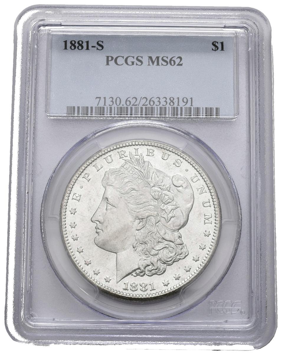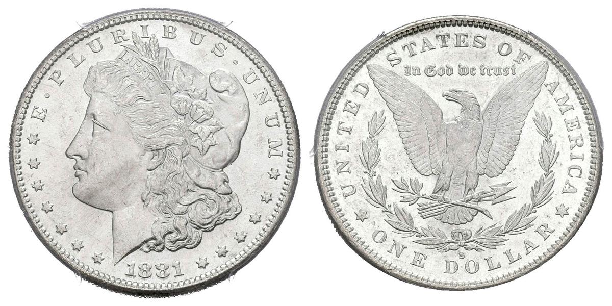ESTADOS UNIDOS. 1 Dollar (Ar. 26,73g/38mm)*. 1881. San Francisco S. (Km#110). MS 62. Encapsulado por PCGS *Peso y medida teórico.