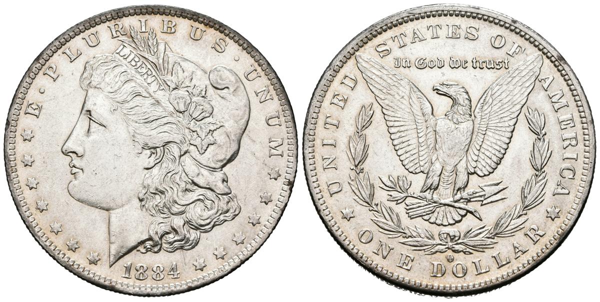 ESTADOS UNIDOS. 1 Dollar (Ar. 26,73g/38mm). 1884. Nueva Orleans. O. (Km#110). MBC+. Limpiada.