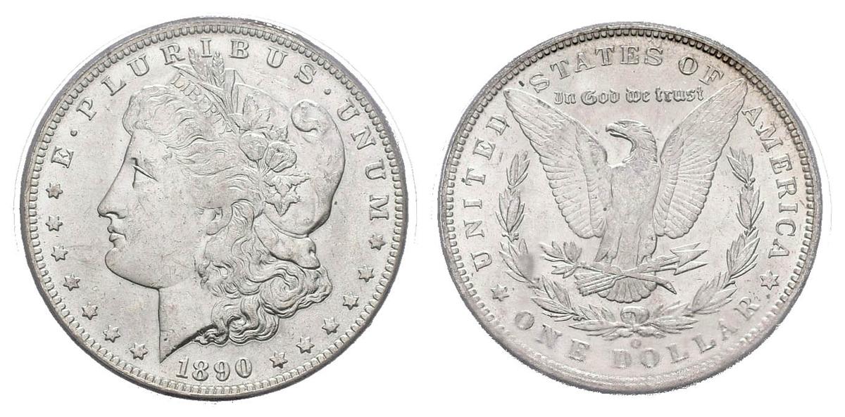 ESTADOS UNIDOS. 1 Dollar (Ar. 26,73g/38mm)*. 1890. Nueva Orleans O. (Km#110). MS 62. Encapsulado por PCGS. *Peso y medida teórico.