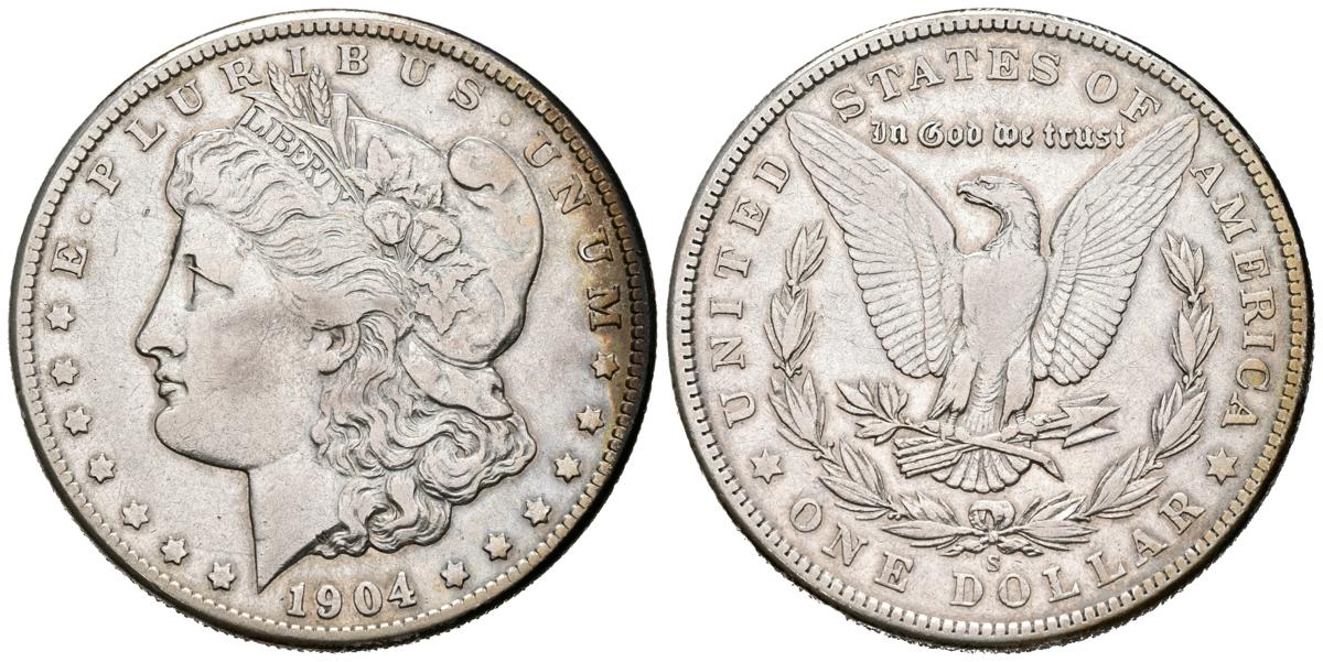 ESTADOS UNIDOS. 1 Dollar (Ar. 26,61g/38mm). 1904. San Francisco. S. (Km#110). MBC+. Limpiada.