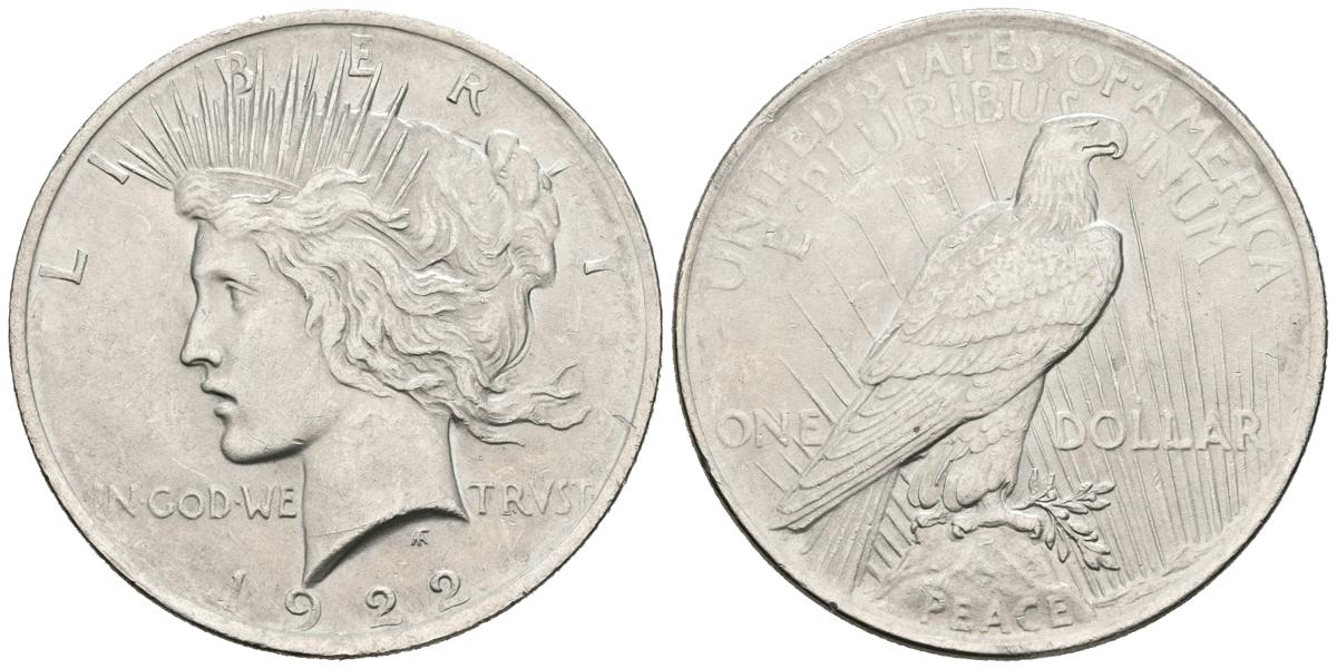 ESTADOS UNIDOS. 1 Dollar (Ar. 26,71g/38mm). 1922. Philadelphia. (Km#150). EBC-.
