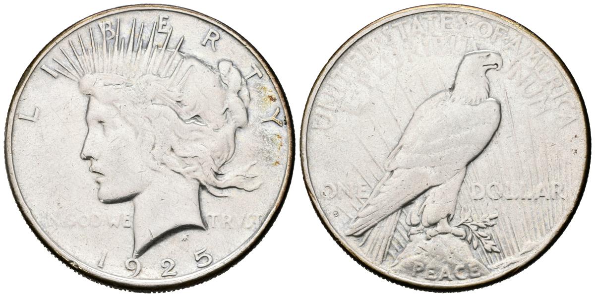 ESTADOS UNIDOS. 1 Dollar (Ar. 26,53g/38mm). 1925. San Francisco. S. (Km#150). MBC. Limpiada.